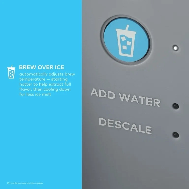 Introducing the Keurig K-Express Essentials Plus Single Serve Coffee Maker: Enjoy refreshingly delicious iced coffee and full-flavored hot coffee from one multitalented coffee maker. Brew the perfect coffee for any craving, mood, or mouthwatering moment. Always easy, always right. Itβs all in the blue Brew Over Ice button. One push, and the Keurig K-Express Essentials Plus coffee maker automatically adjusts the brew temperature, starting hotter to extract full flavor, then cooling down to minimize ice melt. All for a vibrant, balanced iced coffee that never tastes watered down. Brew a 12oz cup for your favorite iced coffee or choose from 3 cup sizes for hot coffee β 6, 8, or 10oz. Whether brewing hot or iced, the 36oz removable reservoir lets you enjoy multiple deliciously refreshing cups between refills.