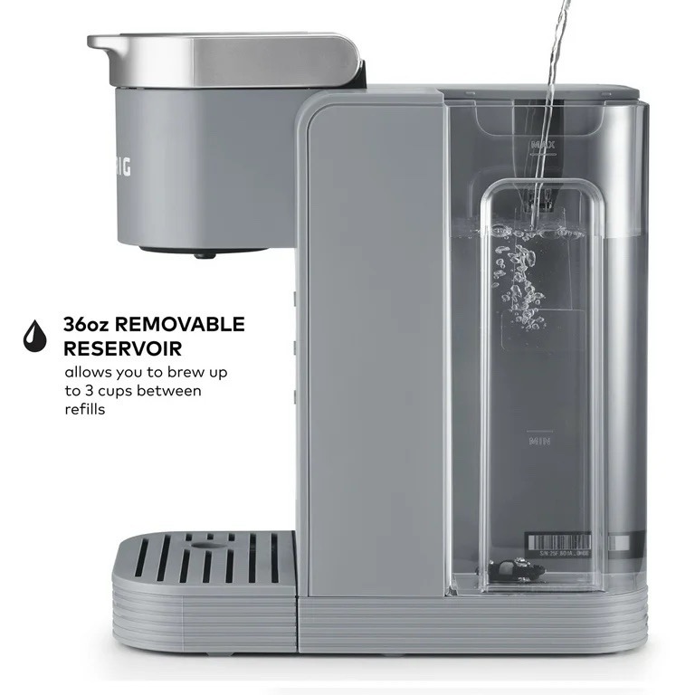 CONVENIENT 36oz REMOVABLE WATER RESERVOIR: Allows you to brew up to 3 cups between refills.