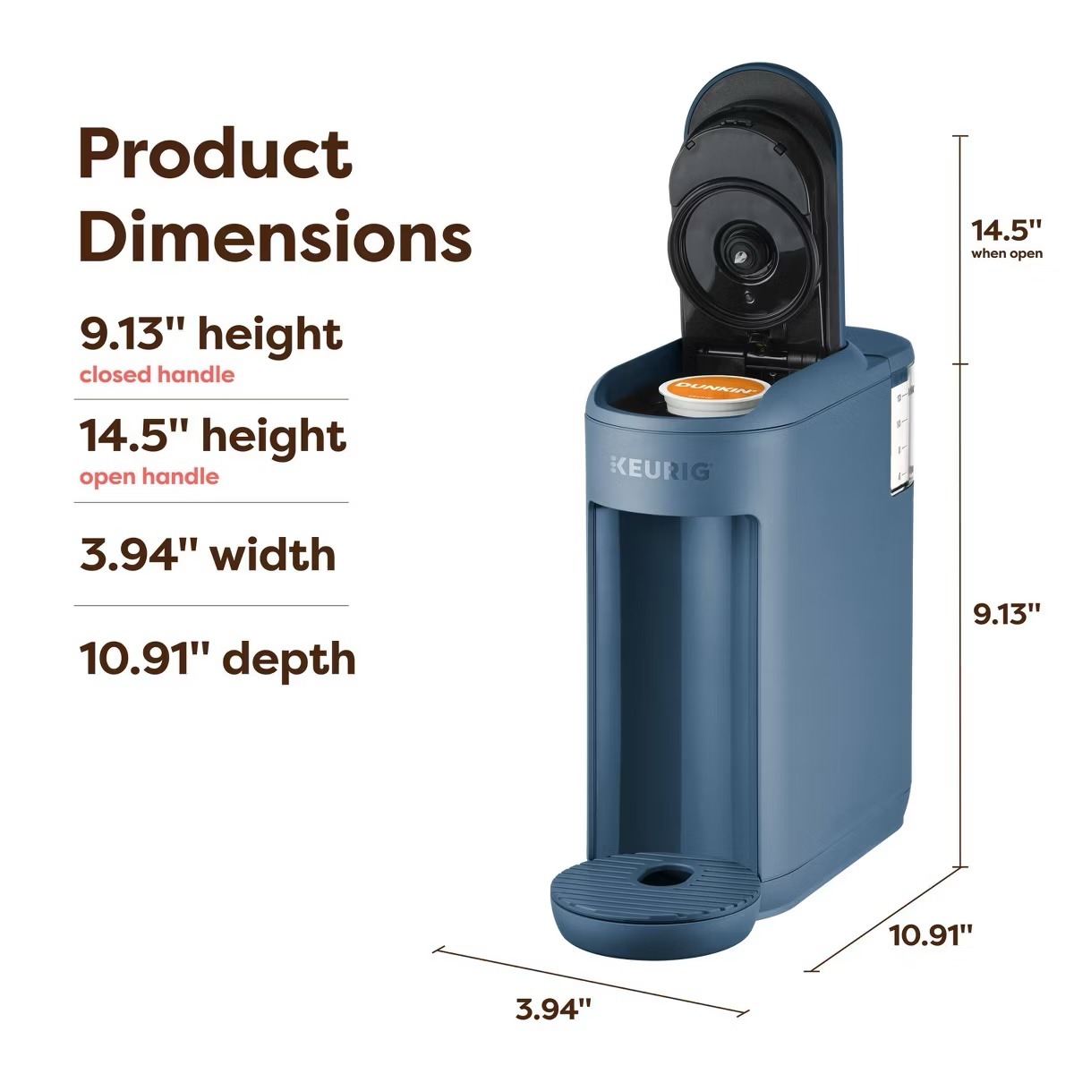 At just 4” wide, it’s the smallest Keurig brewer ever, making it a major space-saver when it comes to your daily cup. Perfect for small kitchens, dorm rooms, and tiny apartments, the K-Mini Mate brewer’s compact design means it can fit almost anywhere you might want to place it.