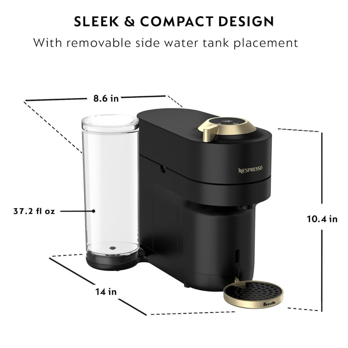 Add a touch of color to your life with the Nespresso Vertuo Pop+ coffee maker and espresso machine. Bursting in a range of vibrant colors, Vertuo Pop+ makes a bold statement to match your style. With five cup sizes, from Espresso to Alto and Cold Brew style coffee, simply choose your Vertuo pod, pop it in, and you’re away at the touch of a button. To keep you spinning, the machine reads the code on each pod to reveal its hidden treasures, from aroma to crema. The Vertuo Pop+ has a water tank accessible from the side, all in a compact design. Always connected, Vertuo Pop+ updates automatically, ensuring you get a smooth and consistent coffee experience.