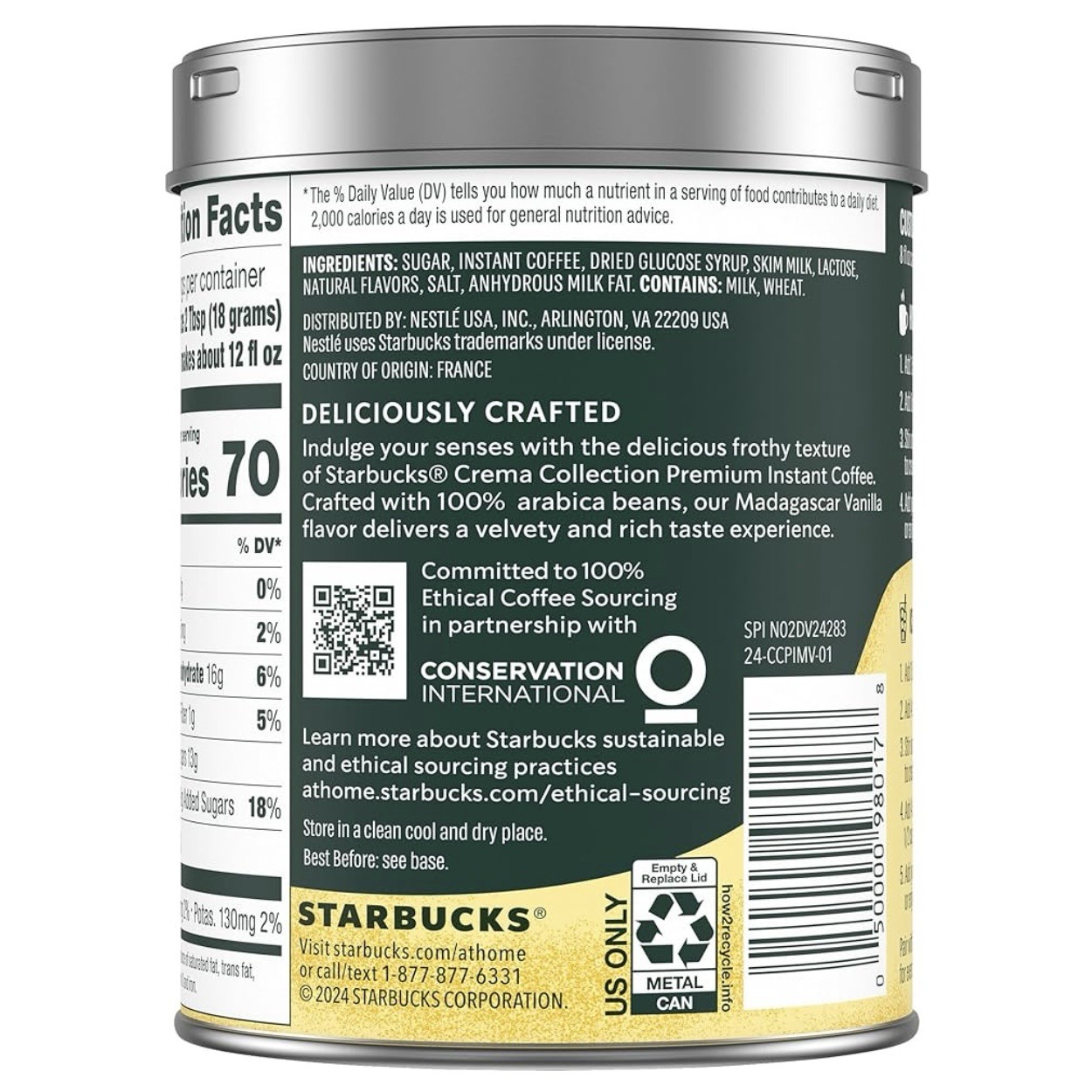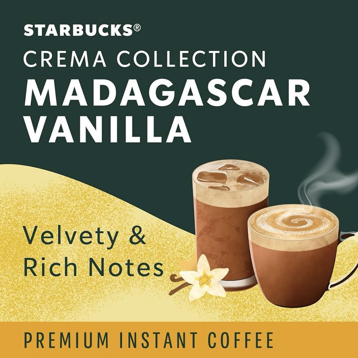 Indulge your senses with an instant uplift from Starbucks Crema Collection Premium Instant. Crafted with the same high-quality 100% arabica beans we brew in our cafés, Madagascar Vanilla delivers a velvety and rich taste experience in an instant.