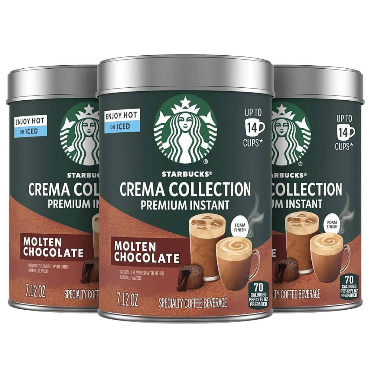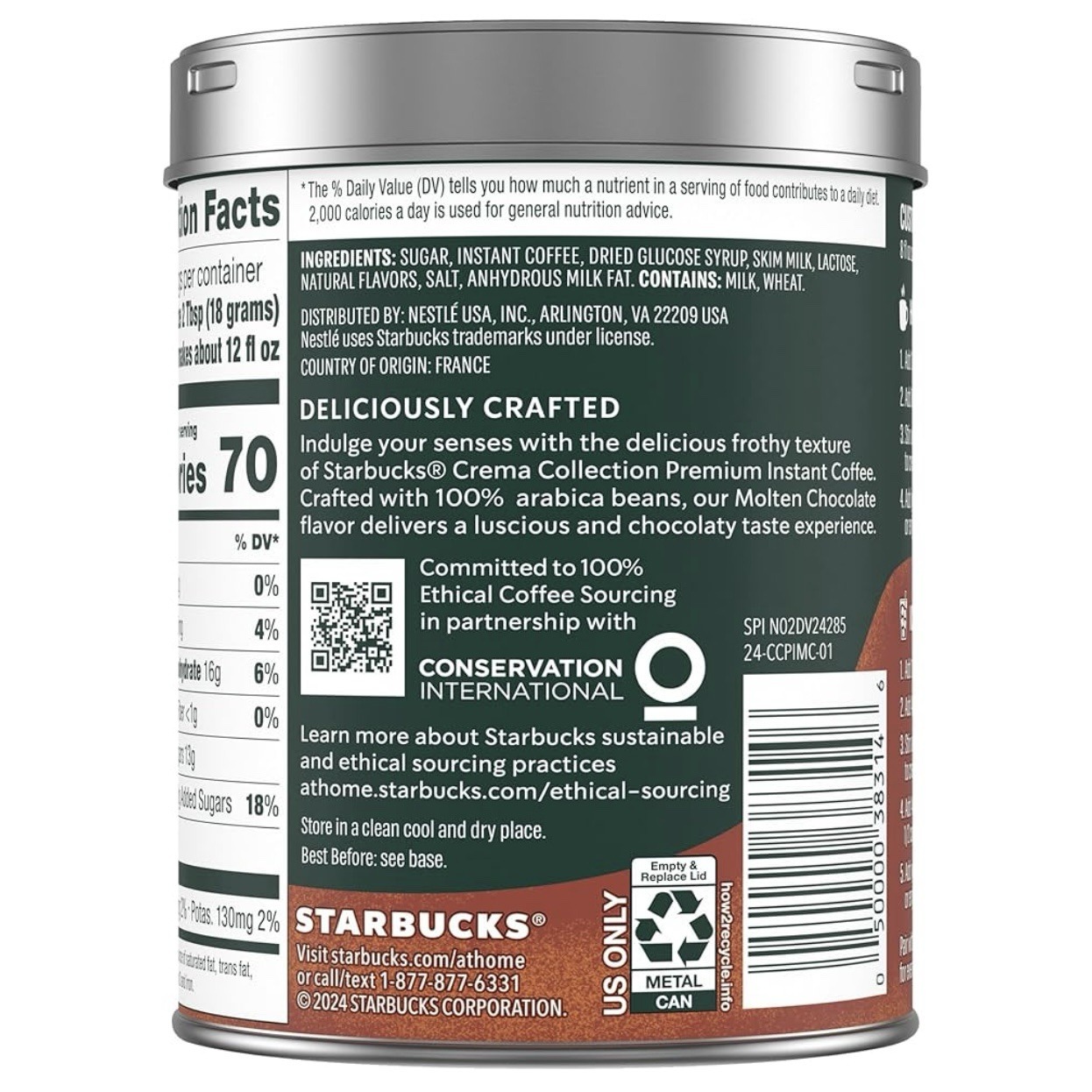 Indulge your senses with an instant uplift from Starbucks Crema Collection Premium Instant. Crafted with 100% arabica beans, Molten Chocolate flavor delivers a luscious and chocolaty taste experience.